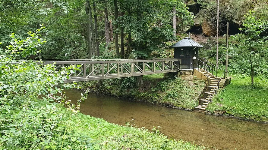 Starting your hike near the picturesque region of Sächsische Schweiz-Osterzgebirge in Germany, this 10 km (6.2 miles) loop trail offers a moderate challenge with an elevation gain of approximately 700 meters (2,297 feet). The trailhead is conveniently located near the Ostrauer Muehle, which can be accessed by car or public transport. If you're driving, there is parking available near the trailhead. For those using public transport, take a train to Bad Schandau and then a bus to Ostrauer Muehle.