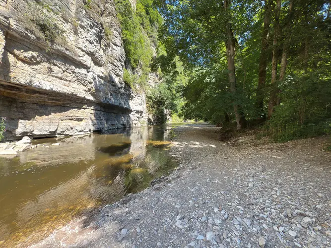At approximately 5 km (3.1 miles), you'll reach the Wutach Gorge, a stunning natural feature that is one of the highlights of this trail. The gorge is known for its dramatic cliffs and cascading waterfalls, offering numerous photo opportunities. Take a moment to appreciate the geological formations that have been shaped over millennia.