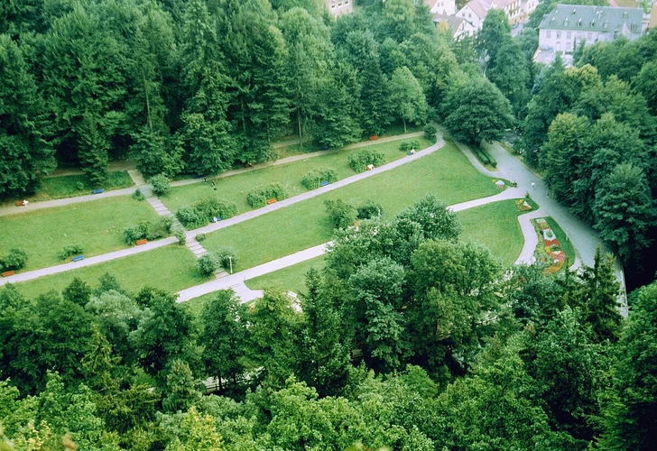 The trail begins at the Kurpark, a beautifully landscaped garden that dates back to the 19th century. As you start your hike, you'll be greeted by meticulously maintained flower beds, fountains, and historic buildings that reflect the spa town's rich history. The Kurpark itself is a significant landmark, known for its therapeutic mineral springs and elegant architecture.