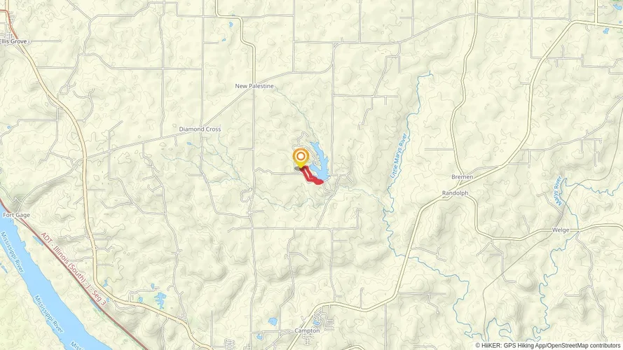 The Randolph County Lake Loop - West Shore is a 1.9 km looped trail that starts and ends in Palestine, Randolph County, Illinois. Based on our data, the hike is graded as Easy. For information on how we grade trails, please read measuring the difficulty of a hiking trail on hiiker. Also, check our latest community posts for trail updates. This hike can be completed in approx 0 hrs 27 mins. Caution is advised on trail times as this depends on multiple variables. For more info read about how we calculate hike time.