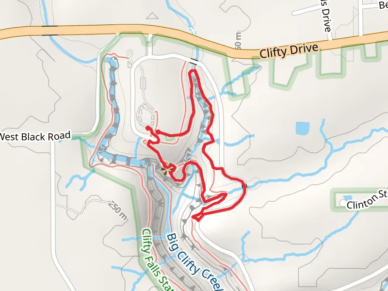 Big Clifty Creek View Loop at 1.7 km. Get off line access to Town, Healthcare, Pharmacy, and Water locations and much more with a Hiiker subscription.