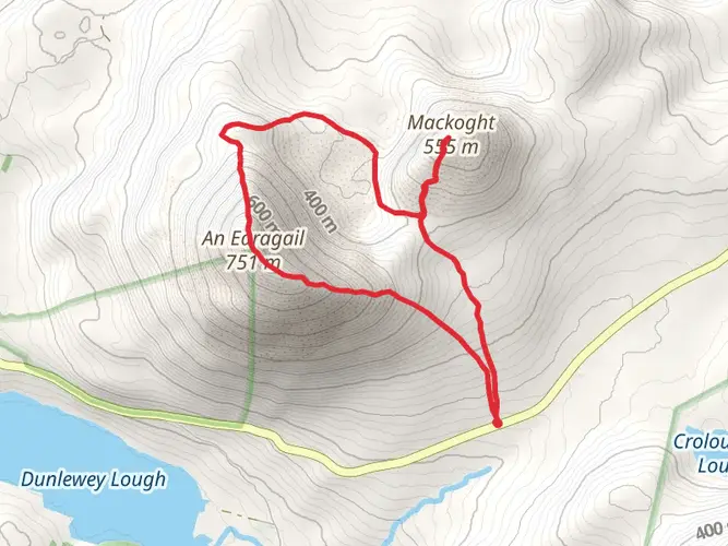 The Drumnalifferny Mountain and Crockfadda Loop is a 15.0 km looped trail that starts and ends in Dunlewy, County Donegal, Ireland. Based on our data, the hike is graded as Difficult. For information on how we grade trails, please read measuring the difficulty of a hiking trail on hiiker. Also, check our latest community posts for trail updates. This hike can be completed in approx 4 hrs 32 mins. Caution is advised on trail times as this depends on multiple variables. For more info read about how we calculate hike time.