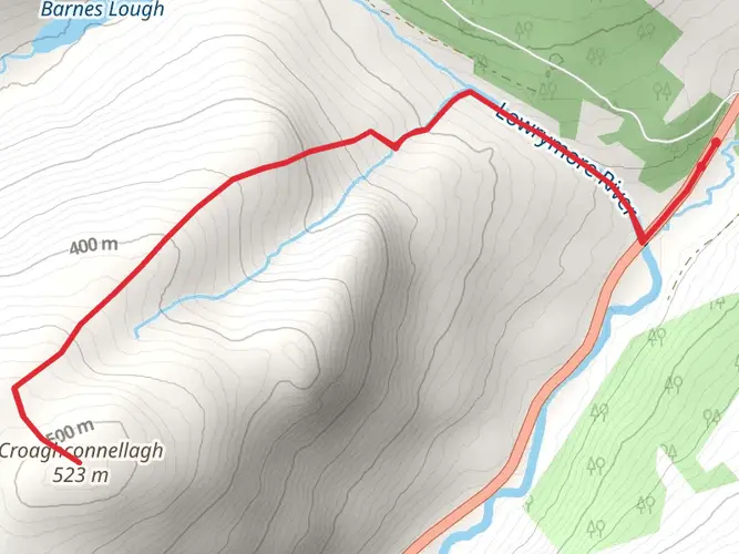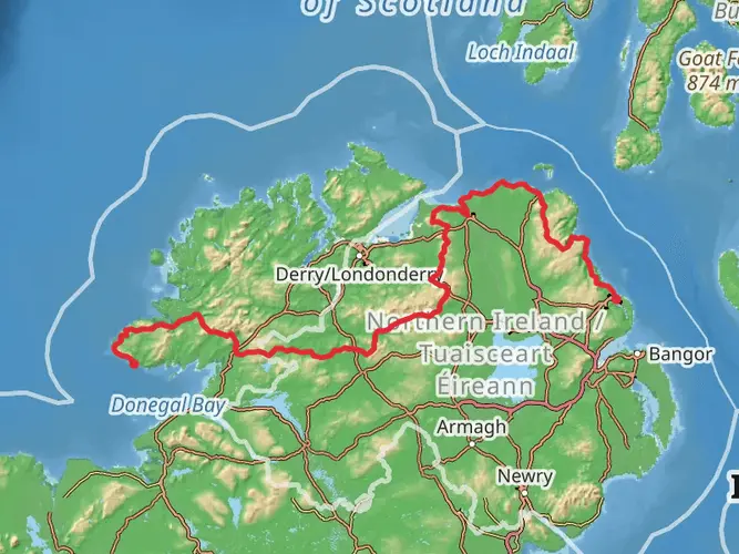 A challenging 3.8 km loop starting and ending near County Donegal (54.7127, -8.0124), this hike packs 56 minutes of demanding terrain into a short distance. With around 100 m of ascent and 111 m of descent, expect steep, uneven ground and brief but strenuous climbs. Ideal for fit hikers seeking a quick workout and rewarding rural Donegal scenery without committing to a long, multi-day route.