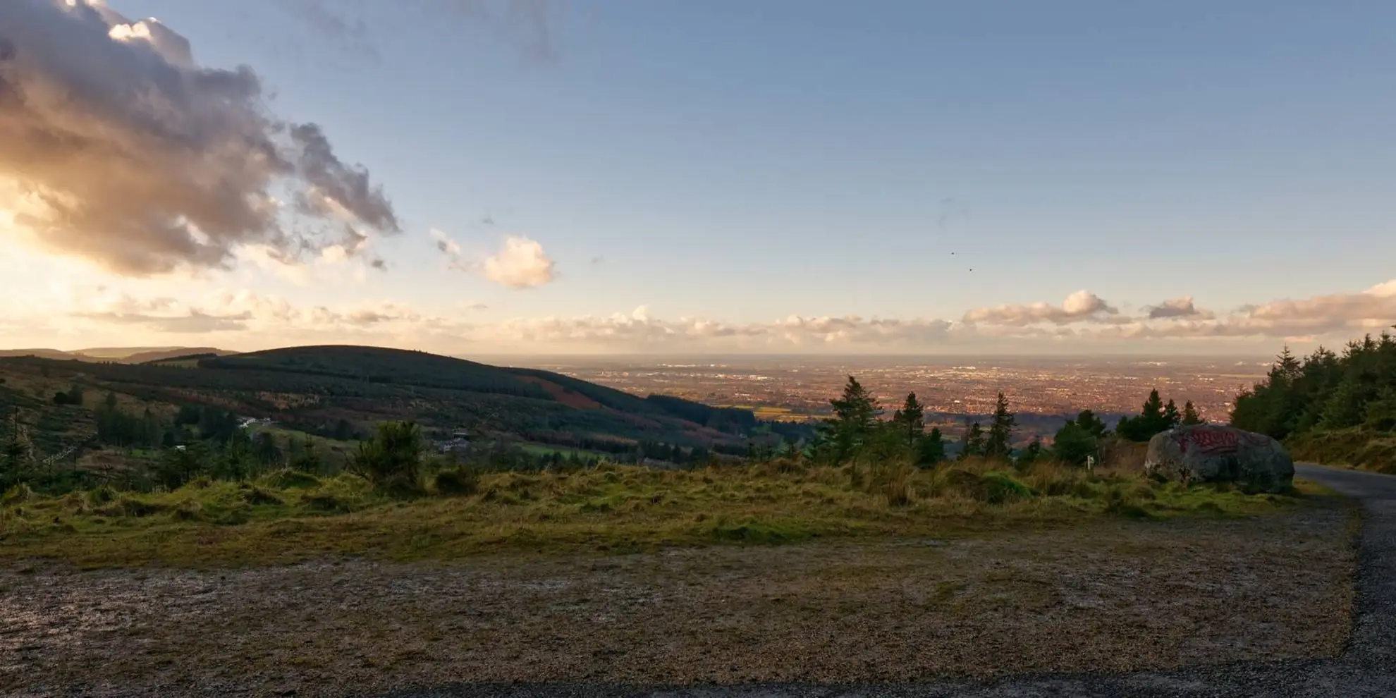 At roughly 2.5 km (1.5 miles), you’ll reach the high point of the route, marked by a trig pillar. This spot offers panoramic views across the Wicklow Mountains, including glimpses of Tibradden Mountain and the Glenasmole Valley. The area is steeped in history, with the nearby Hell Fire Club (Montpelier Hill) visible to the north—a site with 18th-century ruins and legends of secret societies. The landscape here has been shaped by centuries of sheep farming and turf cutting, and you may notice old boundary walls and peat banks.