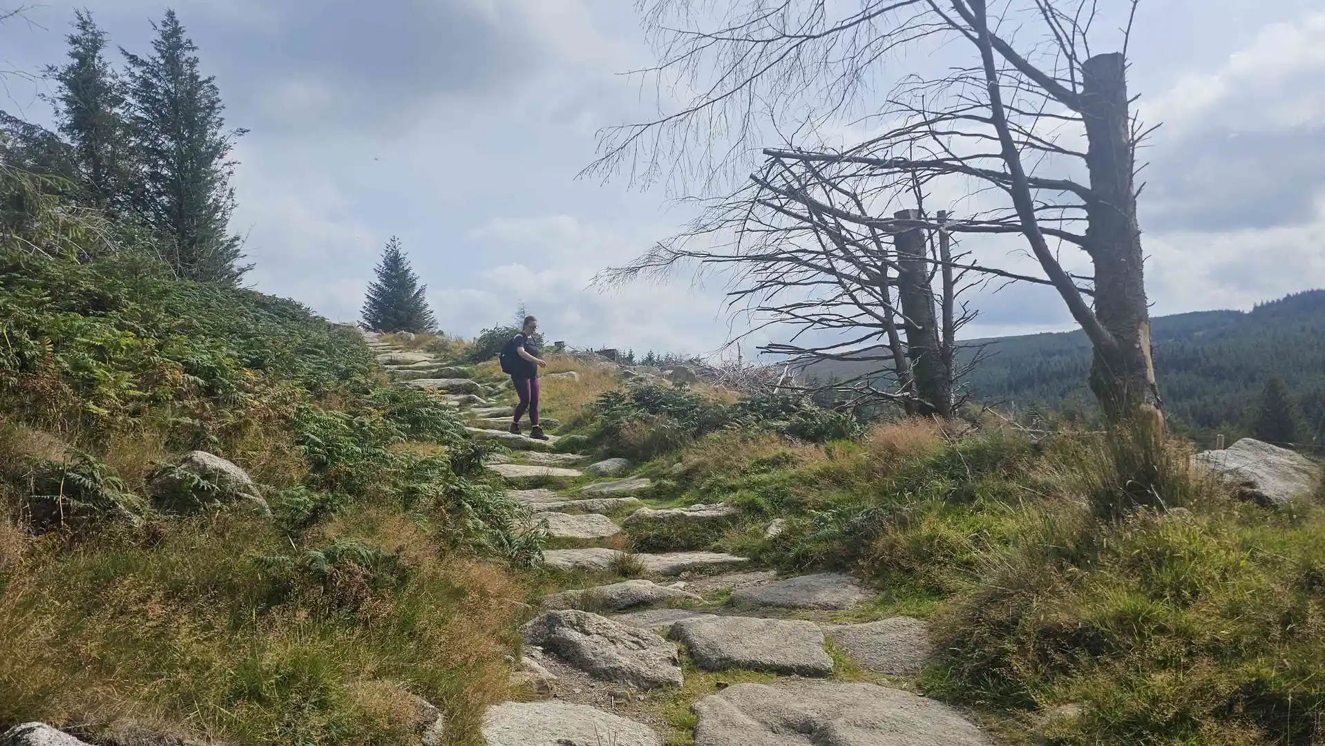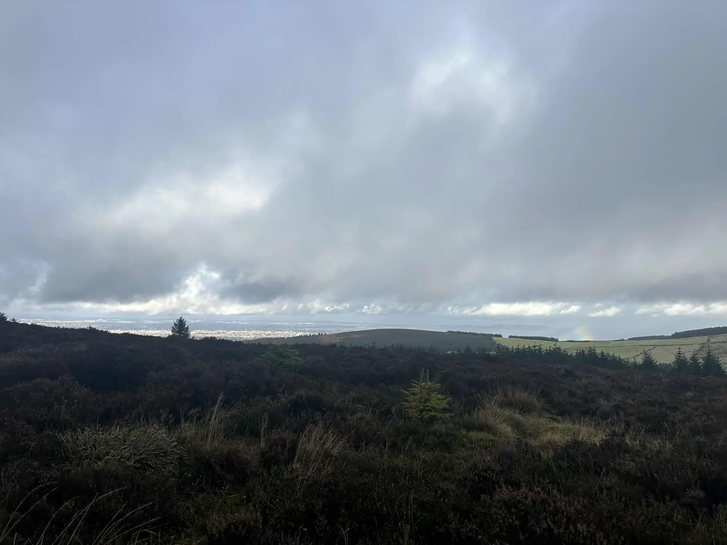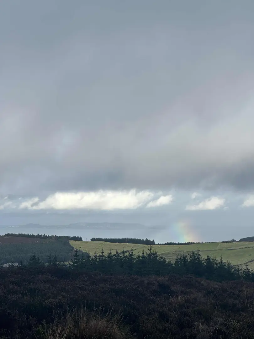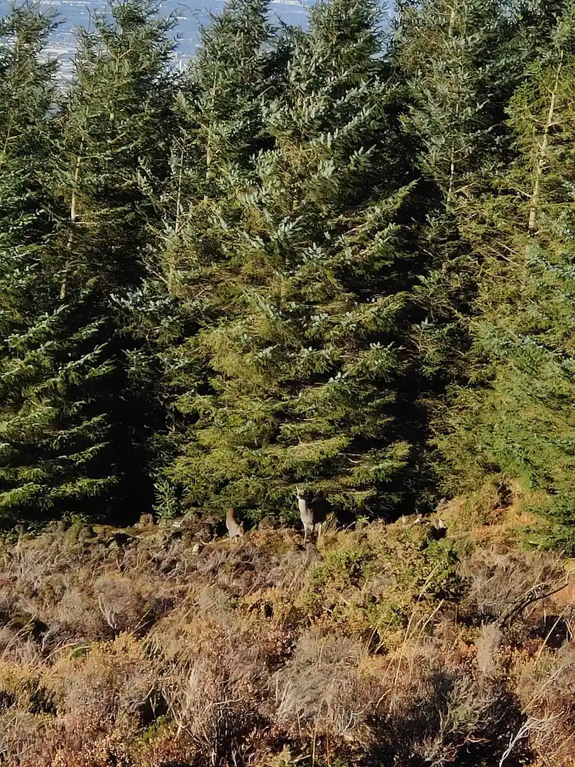 Emerging from the trees around the halfway point, the trail opens onto heathland dotted with heather and gorse. The climb becomes more exposed, offering sweeping views over Dublin city, the Irish Sea, and the Wicklow Mountains. On clear days, the panorama stretches as far as Howth Head and the Sugarloaf. The summit area, at roughly 2.5 km (1.5 miles) from the start, is marked by a prehistoric burial cairn—an ancient passage tomb dating back over 4,000 years, highlighting the region’s archaeological significance.