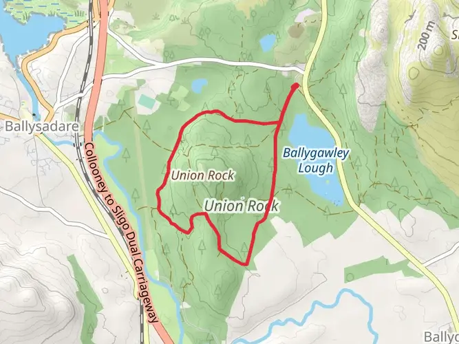 The Union Rock Trail - Sligo is a 5.5 km looped trail that starts and ends in Collooney, County Sligo, Ireland. Based on our data, the hike is graded as Easy. For information on how we grade trails, please read measuring the difficulty of a hiking trail on hiiker. Also, check our latest community posts for trail updates. This hike can be completed in approx 1 hrs 17 mins. Caution is advised on trail times as this depends on multiple variables. For more info read about how we calculate hike time.