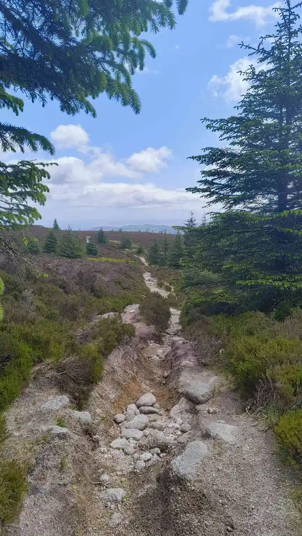 Approximately halfway through the hike, you'll encounter views of the Avonmore River, which is a perfect spot to take a break and enjoy the serene sounds of flowing water. The trail also offers occasional glimpses of the Wicklow Mountains, providing a stunning backdrop to your journey.