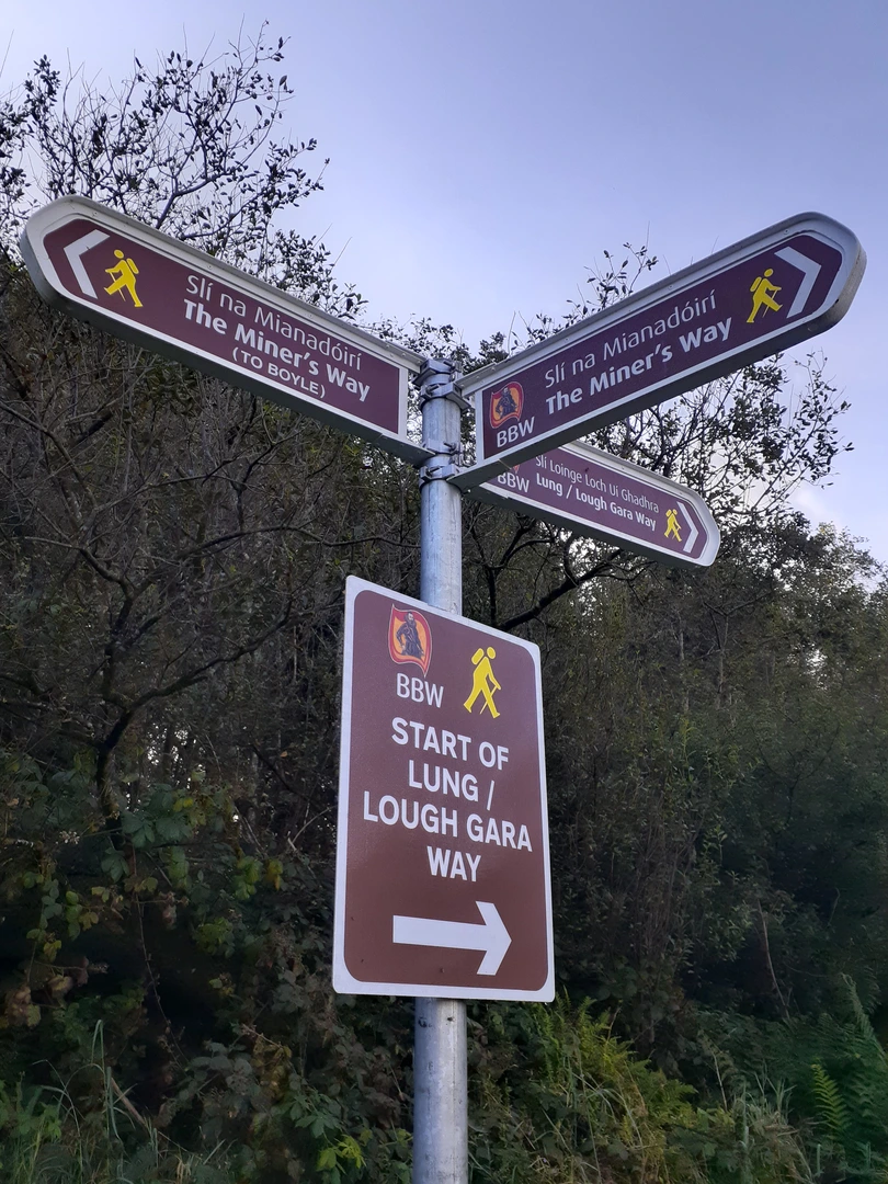 To reach the starting point of the Miner's Way and Historical Trail, hikers can drive to the vicinity of Arigna, where parking is available. For those relying on public transport, buses serve nearby towns such as Carrick-on-Shannon, from which a taxi can be taken to Arigna.