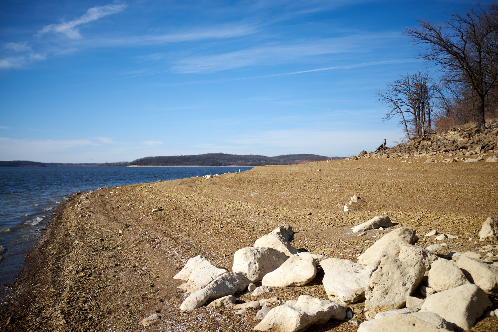 The trail's elevation gain is gradual, with the most significant ascents occurring in the bluffs overlooking the lake. These rocky outcrops provide a moderate challenge and are a highlight for many hikers. The terrain is a mix of packed earth, rock, and occasional muddy patches, so wearing sturdy hiking boots is advisable.