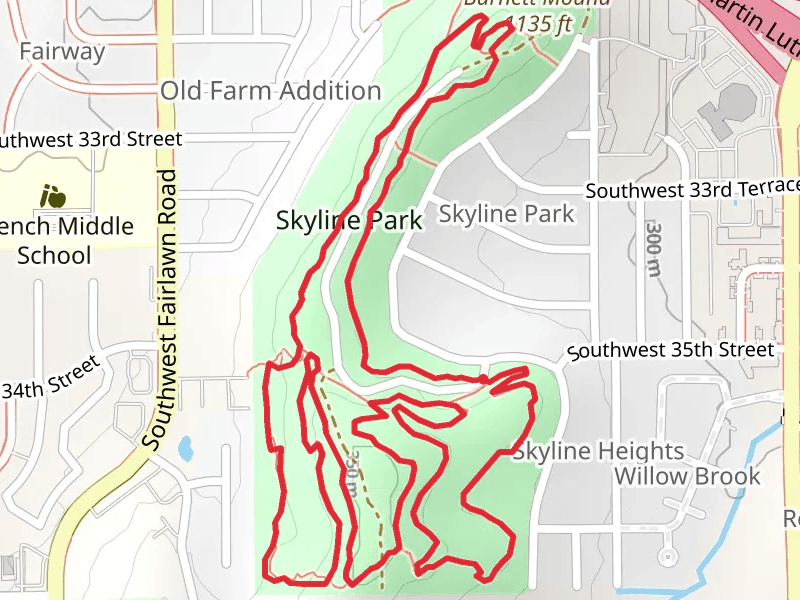 Burnett Mound and Skyline Park Loop and the trail with the least amount of climbing is the