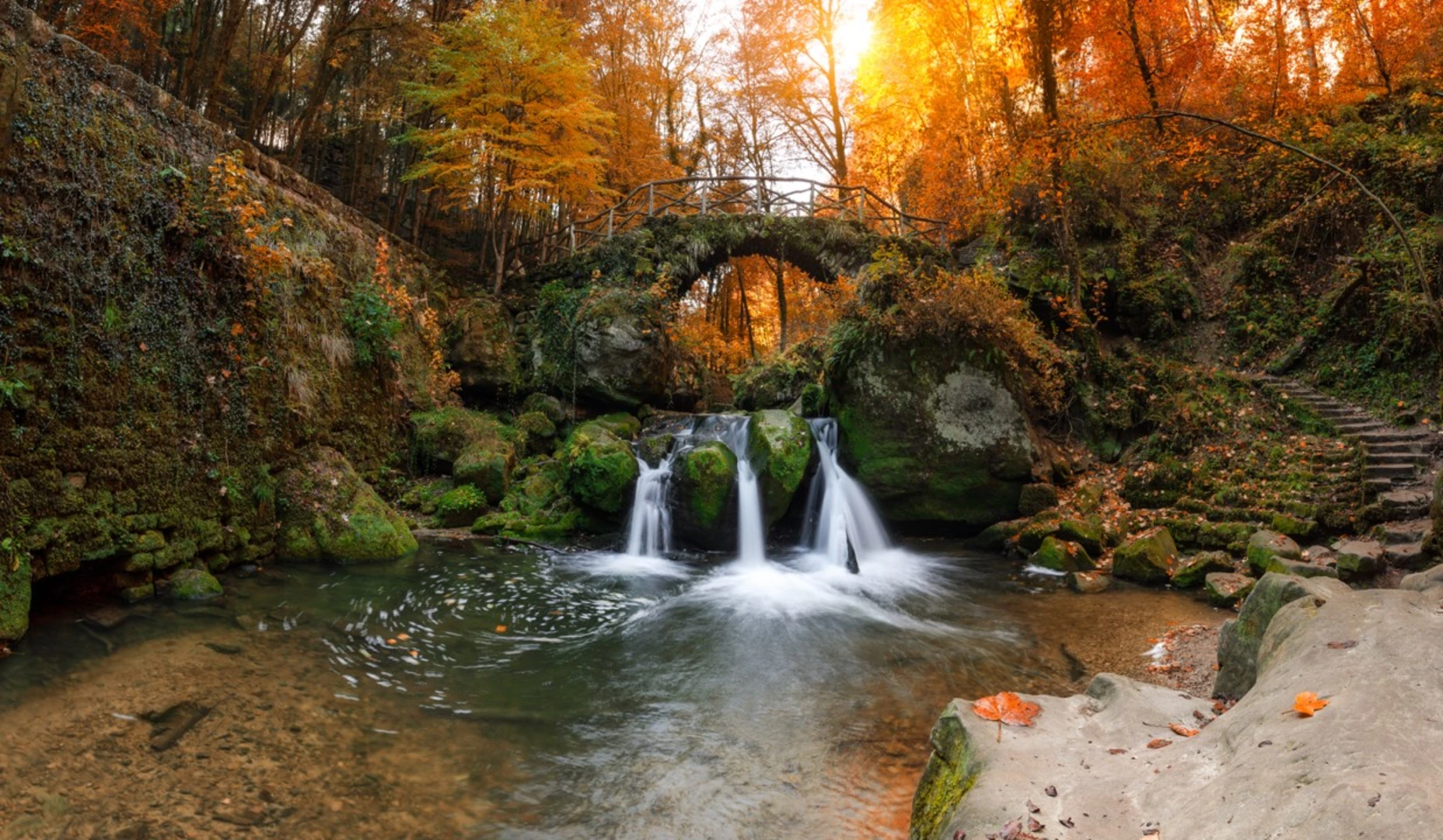 The Mullerthal Trail 3 is renowned for its stunning natural features. Early in the hike, you'll encounter the Schiessentümpel waterfall, a picturesque cascade framed by a stone bridge that is a perfect spot for photography enthusiasts. As you continue, the trail leads you through dense woodlands, home to a diverse array of flora and fauna. Keep an eye out for local wildlife, including deer, foxes, and a variety of bird species.