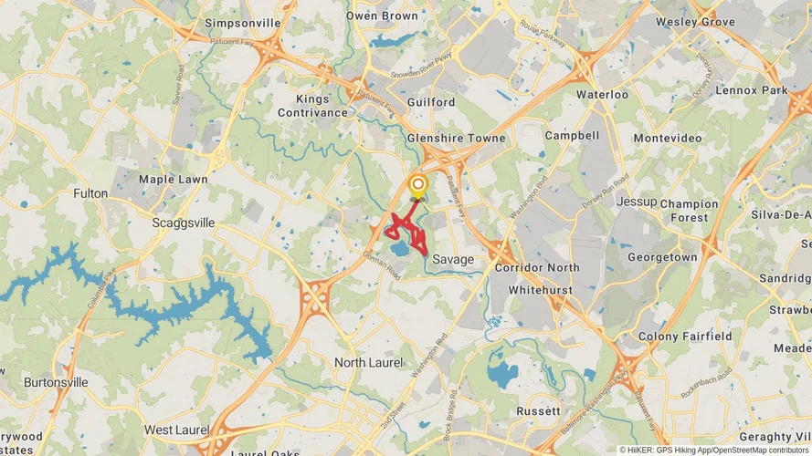 The Red, Blue and Blue-Green Loop Trail is a 5.8 km looped trail that starts and ends in Jessup, Howard County, Maryland. Based on our data, the hike is graded as Easy. For information on how we grade trails, please read measuring the difficulty of a hiking trail on hiiker. Also, check our latest community posts for trail updates. This hike can be completed in approx 1 hrs 23 mins. Caution is advised on trail times as this depends on multiple variables. For more info read about how we calculate hike time.