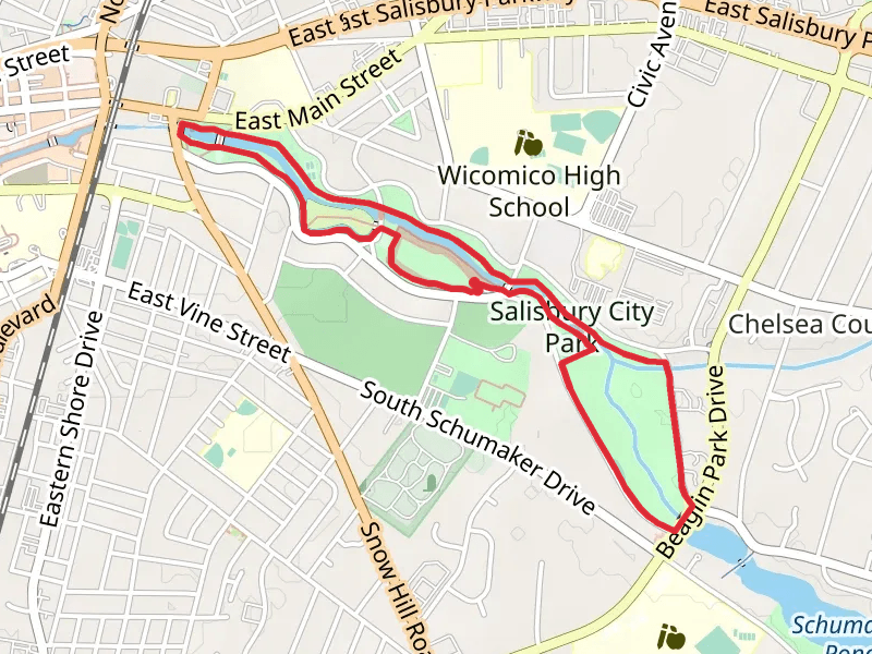 Salisbury City Park Loop at 5.4 km. For a shorter adventure you can try the