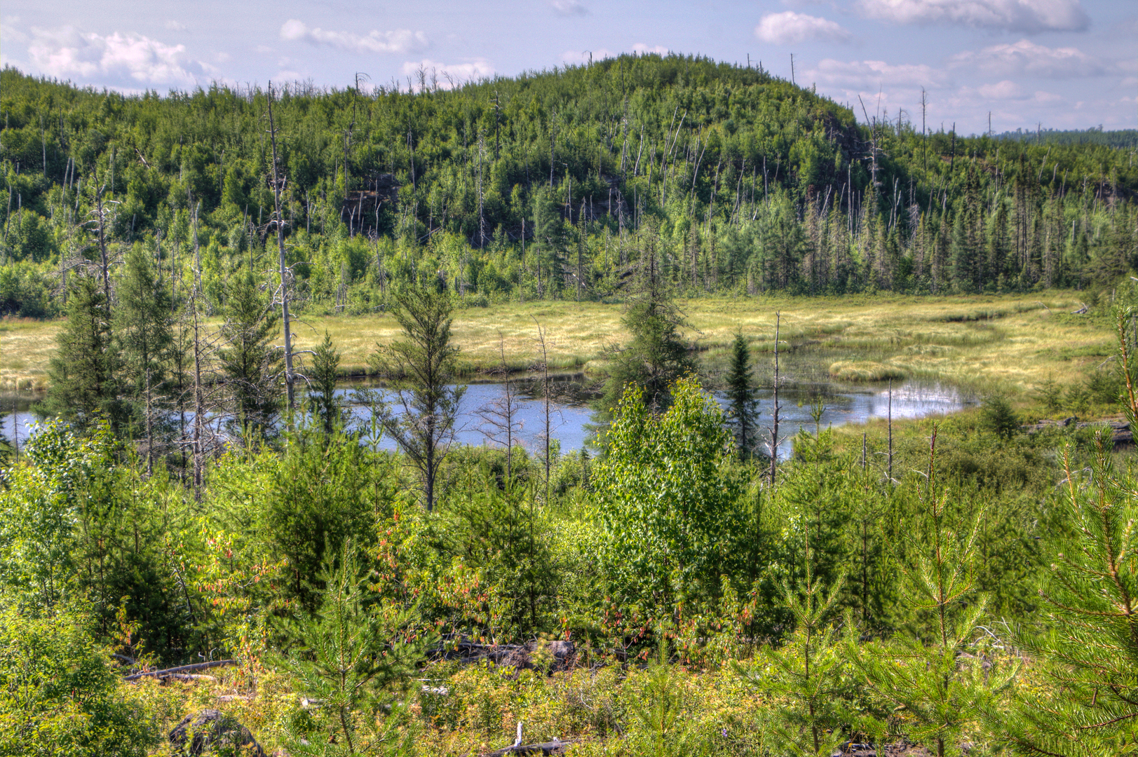 Landmarks and Natural Features Continuing on, the trail meanders along the shoreline of Angleworm Lake, where you can observe beavers at work and may catch a glimpse of the resident moose population. The path then leads you through a series of smaller lakes and bogs, each with its own unique ecosystem. Approximately halfway through the hike, you'll encounter the Whiskey Jack campsite, a perfect spot for an overnight stay or a restful break.