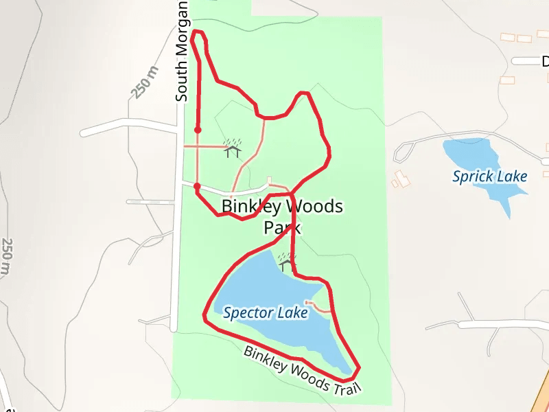 Rinkley Woods Park Loop at 1.5 km. Get off line access to Campsite, Shop, Fastfood, and Shelter locations and much more with a Hiiker subscription.