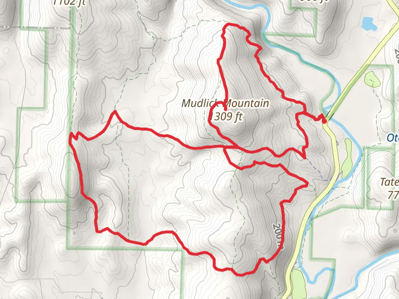 Mudlick Mountain Loop Trail and the trail with the least amount of climbing is the