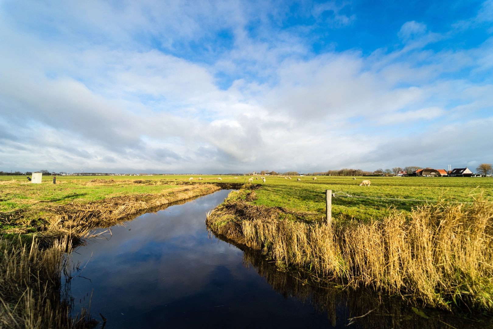 You’ll notice the geometry of the polder: straight drainage lines, right-angled field boundaries, and the ever-present water management network. Even when you’re near towns, the landscape reads as engineered—because it is.
