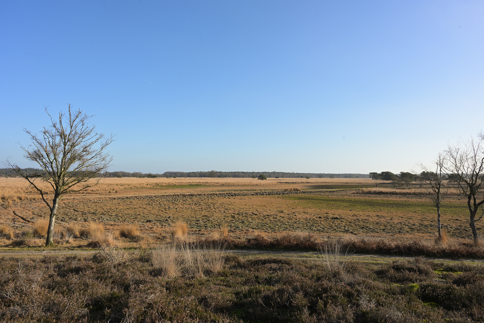 Starting at the Tour de Frans watchtower, a 12-meter-high structure built in 2019, the trail offers panoramic views over the Kampina nature reserve. The watchtower is named after forester Frans Kapteijns, who initiated its construction through crowdfunding. From mid-August to mid-September, the surrounding heather blooms into a vibrant purple, creating a picturesque landscape.