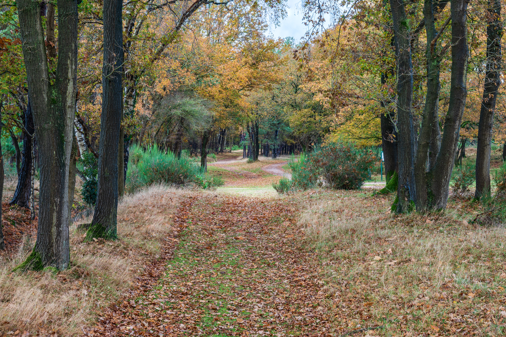 Heathlands and Woodlands After about 2 km (1.2 miles), the path transitions from open heath to the more wooded terrain of the Spanderswoud. This forested section is rich in birdlife—look out for woodpeckers, nuthatches, and the occasional buzzard circling overhead. The forest floor is carpeted with moss and ferns, and in spring, wildflowers add splashes of color. The trail is well-marked, but for added confidence, use HiiKER to track your progress and ensure you stay on course.