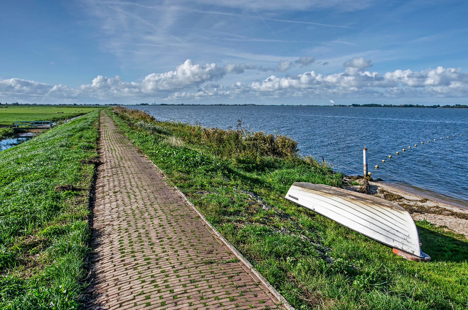The path hugs the dike along the Gouwzee for much of the route, providing unobstructed views across the water to Marken and the distant skyline of Amsterdam on clear days. The dike is well-maintained and suitable for both walkers and cyclists, with benches placed at intervals for rest and birdwatching. In spring and summer, wildflowers line the dike, and the air is filled with the calls of lapwings and terns.