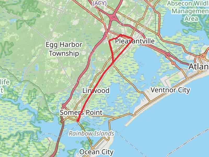 Atlantic County and George K Francis Way at 25.5 km. For a shorter adventure you can try the