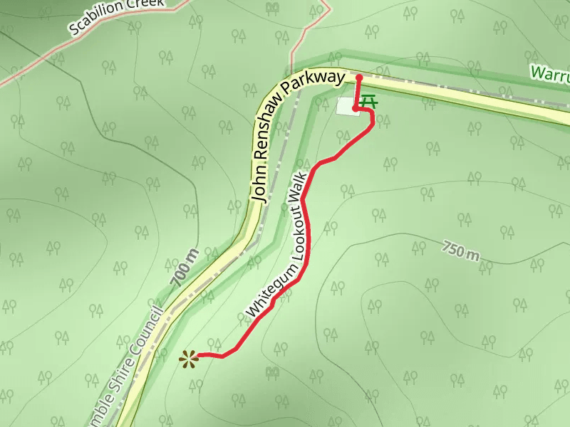 Whitegum Lookout Walk at 1.1 km. Get off line access to Water, Shelter, Campsite, and Peak locations and much more with a Hiiker subscription.