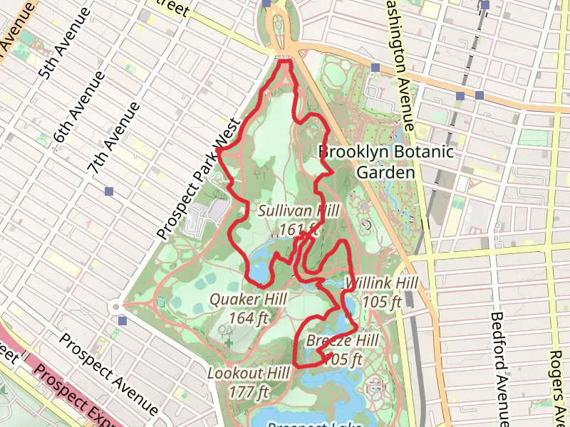 Red Trail via Gerritsen Creek. The longest trail is the
