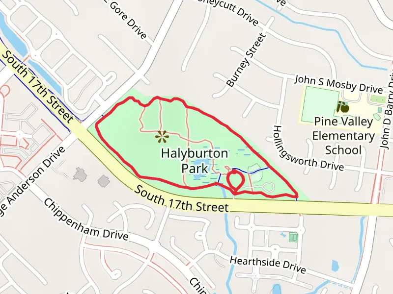 Loop along South 17th Street and the trail with the least amount of climbing is the