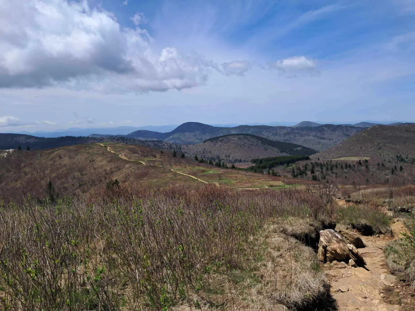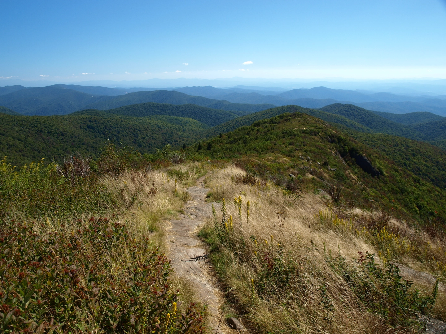 As you continue, you'll ascend Black Balsam Knob, which at 1,920 meters (6,214 feet) is one of the highest peaks in the region. This area, about 21 kilometers (13 miles) from the start, is characterized by its grassy balds and 360-degree views. A short distance later, you'll cross Tennent Mountain, another bald with similar stunning vistas.