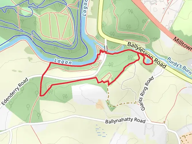 This scenic 8-mile walk begins at Minnowburn, following riverside paths in Barnetts Demense to the Gilchrist Bridge at Edenderry before reaching the ancient stone circle at the Giant’s Ring. From here, the route heads back down towards the River Lagan, joining the meandering peaceful towpaths of Lagan Meadows. The walk offers a varied mix of woodland, meadow and riverside scenery, rich wildlife, and a blend of historic and natural landmarks, all within easy reach of the city.