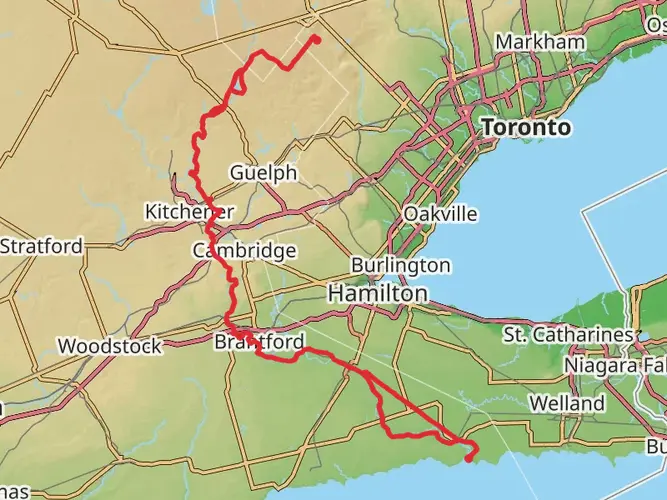An easy 7.26 km loop starting and ending in Mississauga (43.60655, -79.56491), this 93‑minute walk is ideal for casual hikers and families. The route is mostly flat with gentle ups and downs (about 32 m gain and 48 m loss), making it accessible for most fitness levels. Expect suburban scenery, local parks, and neighborhood green spaces, offering a relaxed way to explore the area without strenuous climbs.