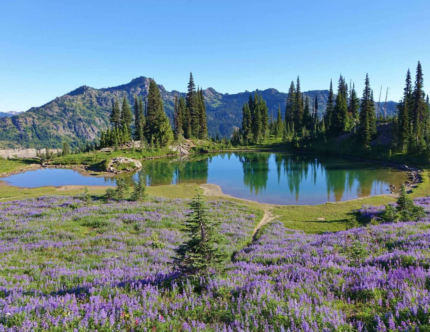 Further north, the trail meanders through the William O. Douglas Wilderness and Norse Peak Wilderness before reaching the Alpine Lakes Wilderness, approximately 240 miles (386 km) from the start. This area is renowned for its crystal-clear lakes and rugged peaks.