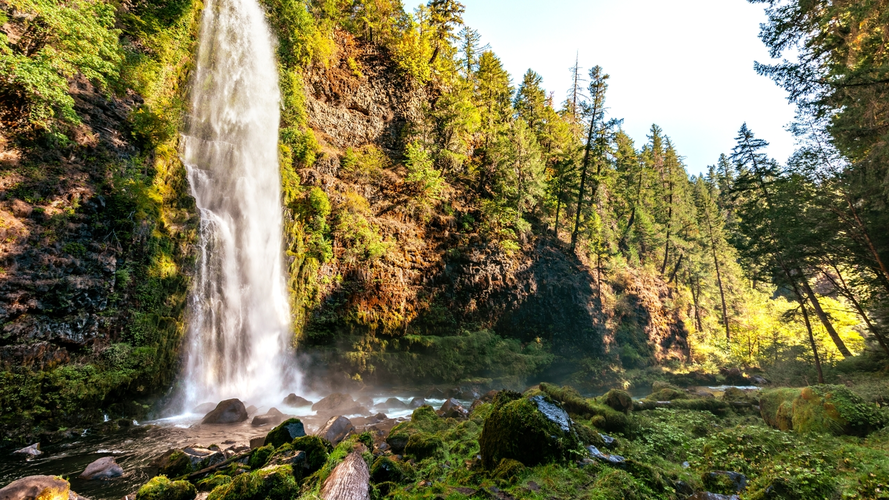 An image depicting the trail Mill Creek Falls and its surrounding area.