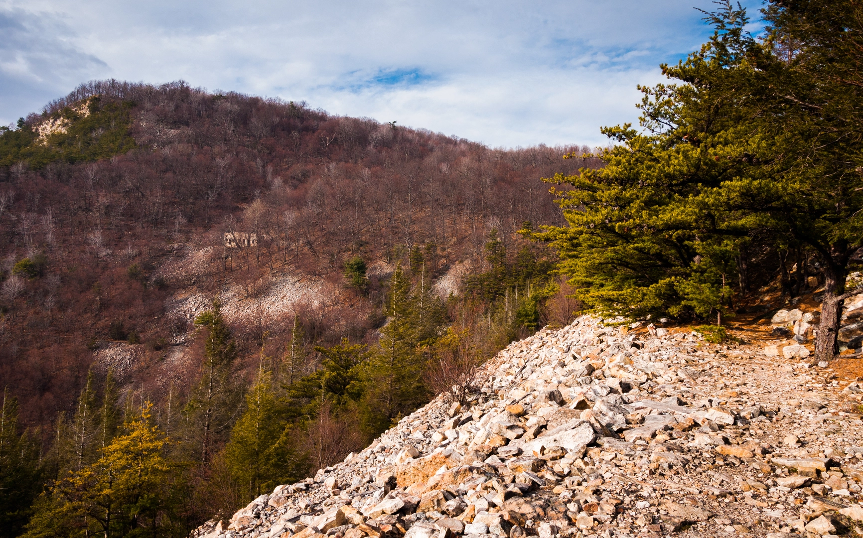 One of the most notable landmarks is the Thousand Steps near Mount Union, which is located approximately 20 miles (32 kilometers) from the southern trailhead. These steps were constructed in the 1930s by quarry workers and ascend Jacks Mountain, offering a challenging climb and a historical glimpse into the region's past.