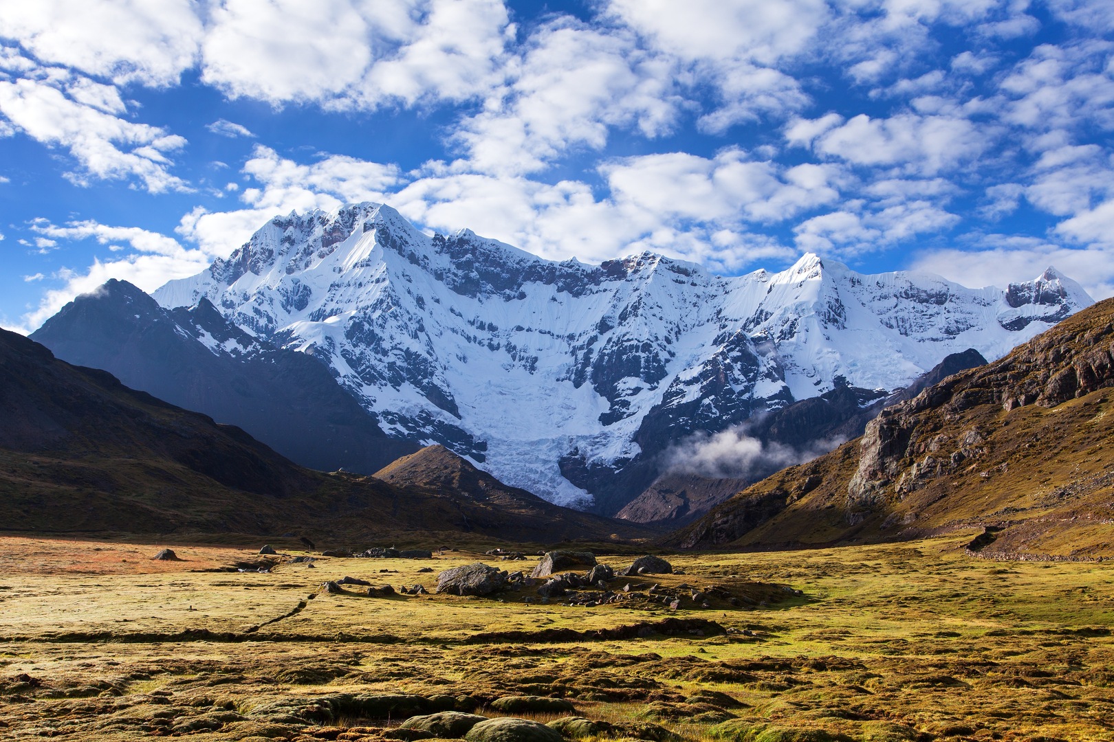 Landmarks and Natural Wonders One of the first significant landmarks encountered is the village of Upis, where trekkers can witness traditional Andean lifestyles and may opt to take a rest in the hot springs nearby. As the trail continues, it skirts the base of the majestic Ausangate Mountain, the region's highest peak at 6,384 meters (20,945 feet), which is revered by the local Quechua people.