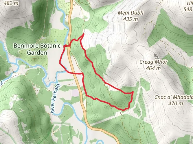 An easy but steadily climbing hike from Dunoon covering about 7.5 km in roughly 2 hours 40 minutes. Starting near the waterfront, the route quickly gains around 680 m, offering expanding views over the Firth of Clyde and the surrounding hills. With very little descent, it’s mostly uphill, making it a gentle but sustained workout. Ideal for walkers looking for a scenic ascent without technical terrain.