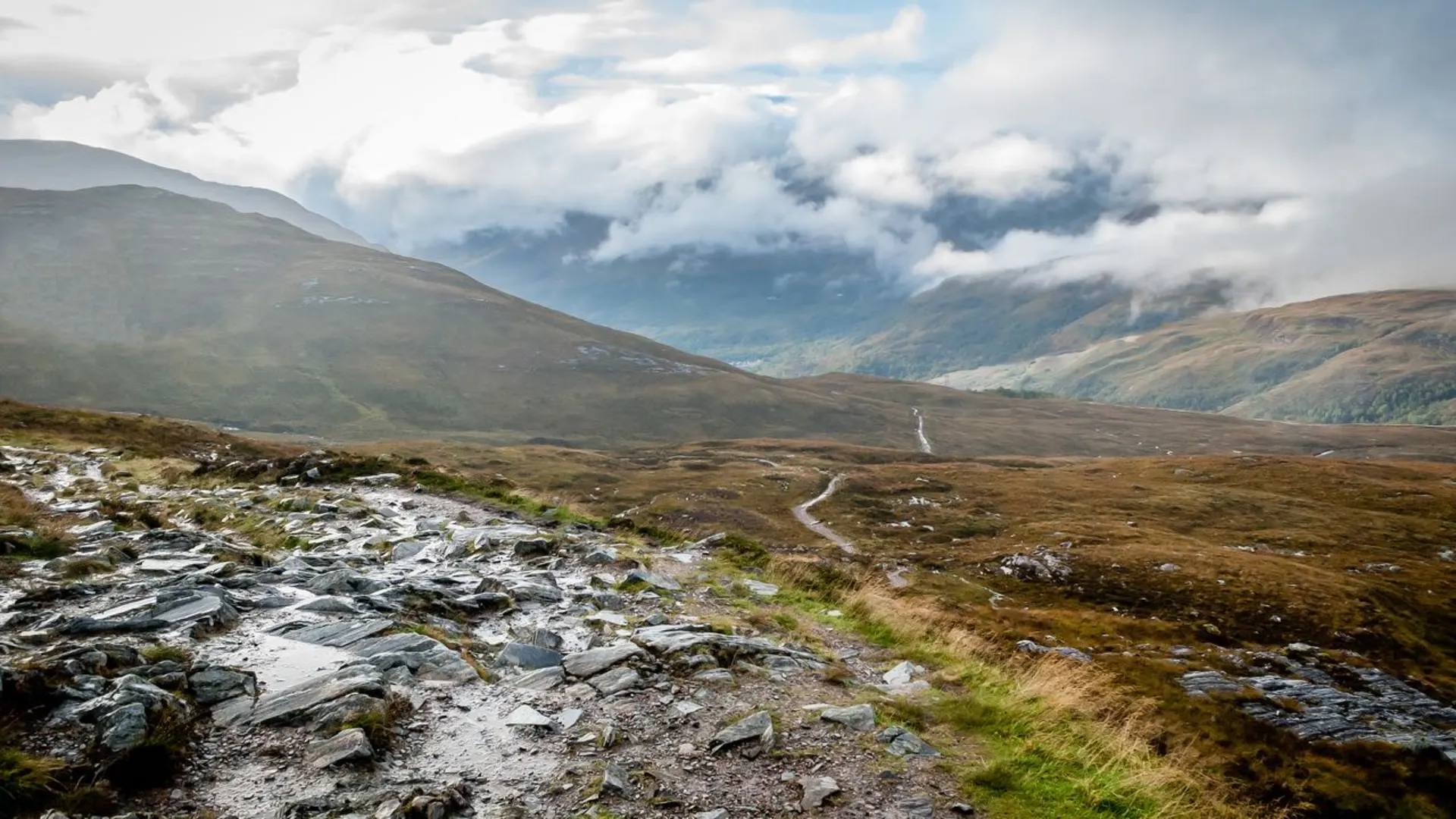 Beyond Loch Lomond, the landscape opens up as you cross the expanse of Rannoch Moor. This 16-kilometer (10-mile) stretch is one of the most remote and atmospheric parts of the trail, characterized by its peat bogs and moorland. The sense of isolation here is profound, and the weather can change rapidly, so be prepared.