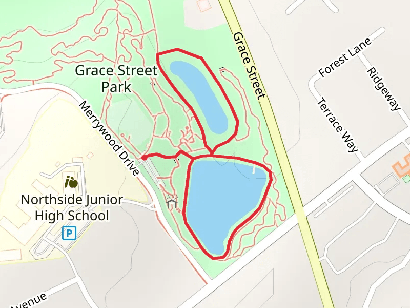 Grace Street Park Ponds Loop at 1.3 km. Get off line access to Healthcare, Shelter, Restaurant, and Fastfood locations and much more with a Hiiker subscription.