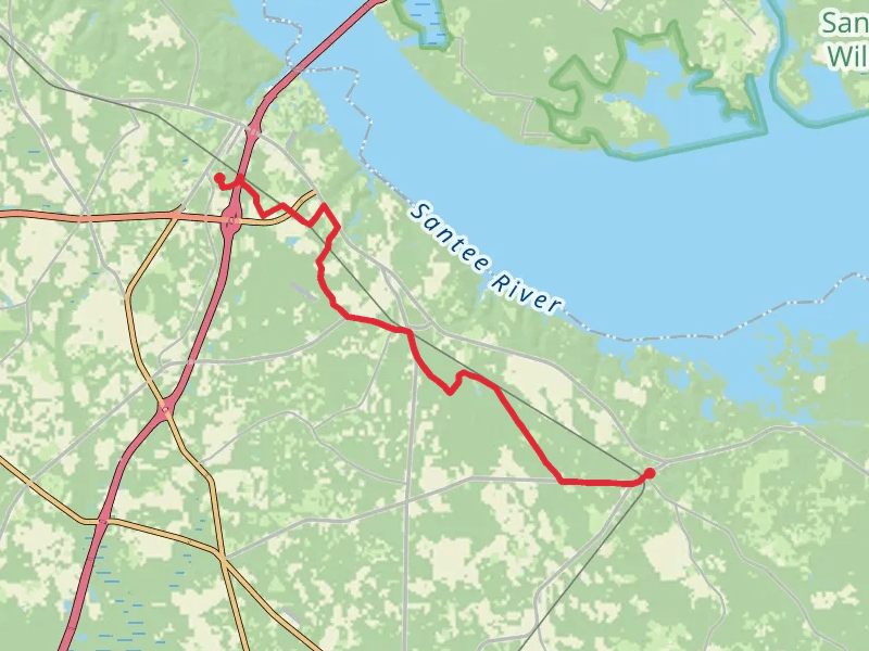 Check out some of the best hiking, walking and backpacking routes in Orangeburg County, South Carolina. The Santee State Park Loop Trail is the most popular trail. The trail with the highest elevation climb is the Santee Loop Trail and the trail with the least amount of climbing is the Oak Pinolly Nature Trail. The longest trail is the Palemetto Trail - Santee Passage at 21.3 km. For a shorter adventure you can try the Oak Pinolly Nature Trail at 1.5 km. Get off line access to Restaurant, Fastfood, Shelter, and Shop locations and much more with a Hiiker subscription.