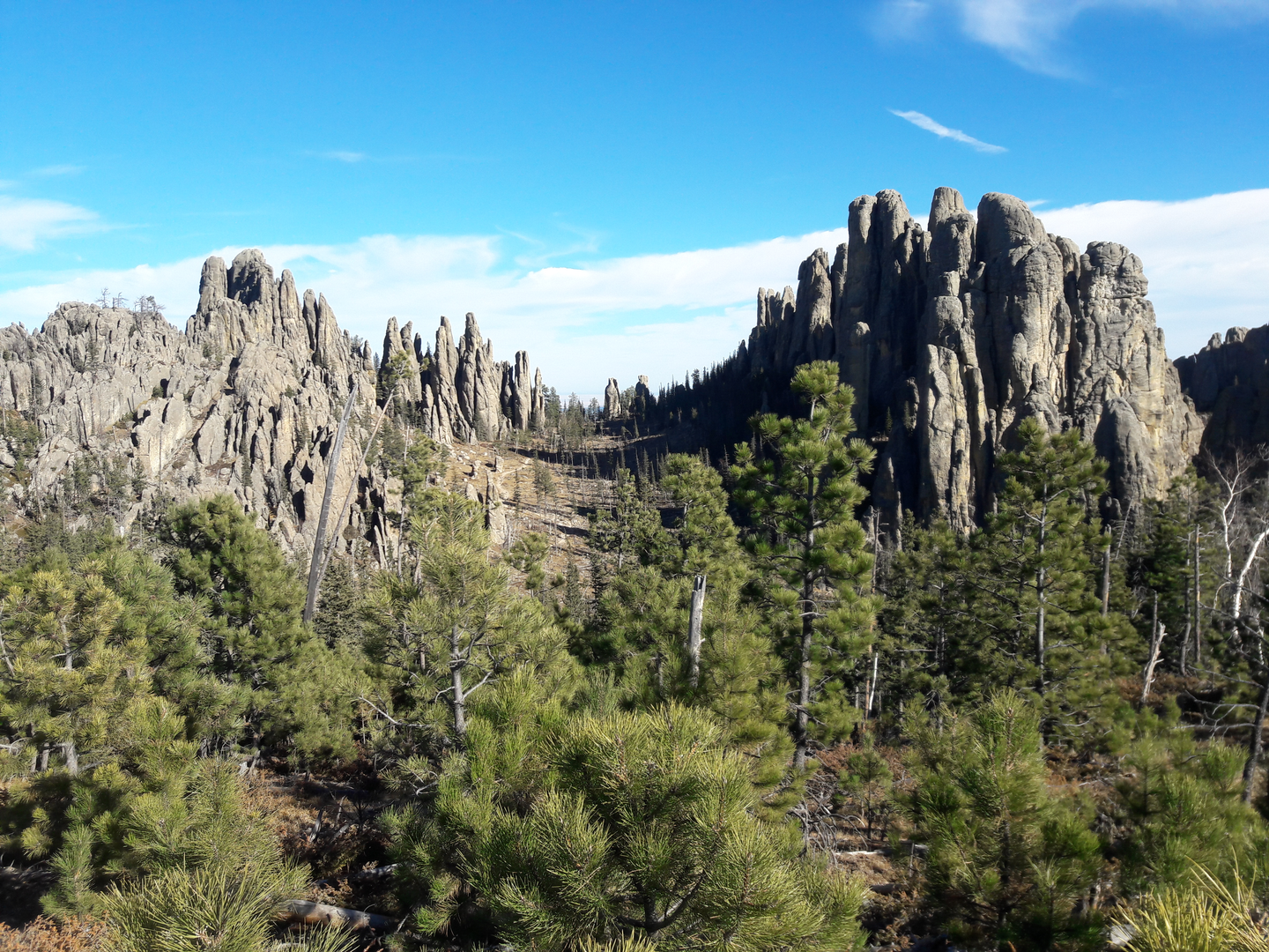 Landmarks and Natural Features The trail will lead you through a diverse landscape, featuring ponderosa pine forests, rugged canyons, and high mountain meadows. Early in the hike, you'll encounter the first significant elevation gain as you ascend toward Harney Peak, the highest point in South Dakota. This area offers breathtaking views of the surrounding Black Hills.