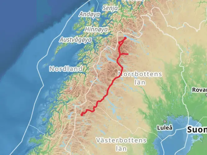 The Padjelantaleden is a 158.3 km trail that starts in Ritsem, Norrbotten County, Sweden. Based on our data, the hike is graded as Easy. For information on how we grade trails, please read measuring the difficulty of a hiking trail on hiiker. Also, check our latest community posts for trail updates. This hike can be completed in approx 6 days. Caution is advised on trail times as this depends on multiple variables. For more info read about how we calculate hike time.