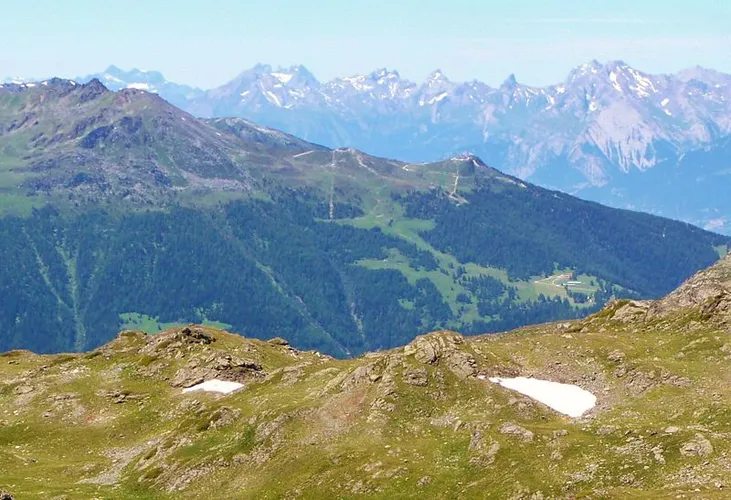 An image depicting the trail Crêt du Midi to Le Louché Lac Trail and its surrounding area.