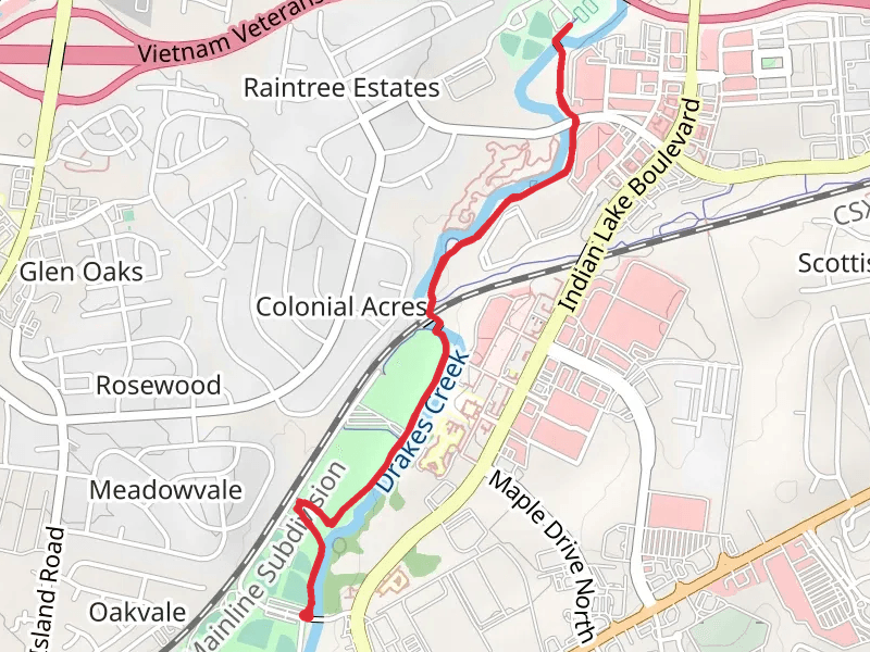Triple Creek Greenway Loop at 3.0 km. Get off line access to Healthcare, Shop, Restaurant, and Fastfood locations and much more with a Hiiker subscription.