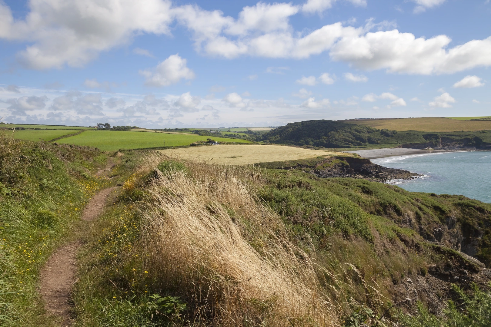 To reach the trailhead, if you're driving, head towards the small village of Mathry, Pembrokeshire. From there, follow the local road signs towards Aber Mawr Beach. There is a parking area close to the beach where you can leave your car and start your hike. For those opting for public transport, buses serve the nearby village of Mathry, from where you can walk or take a taxi to the trailhead.
