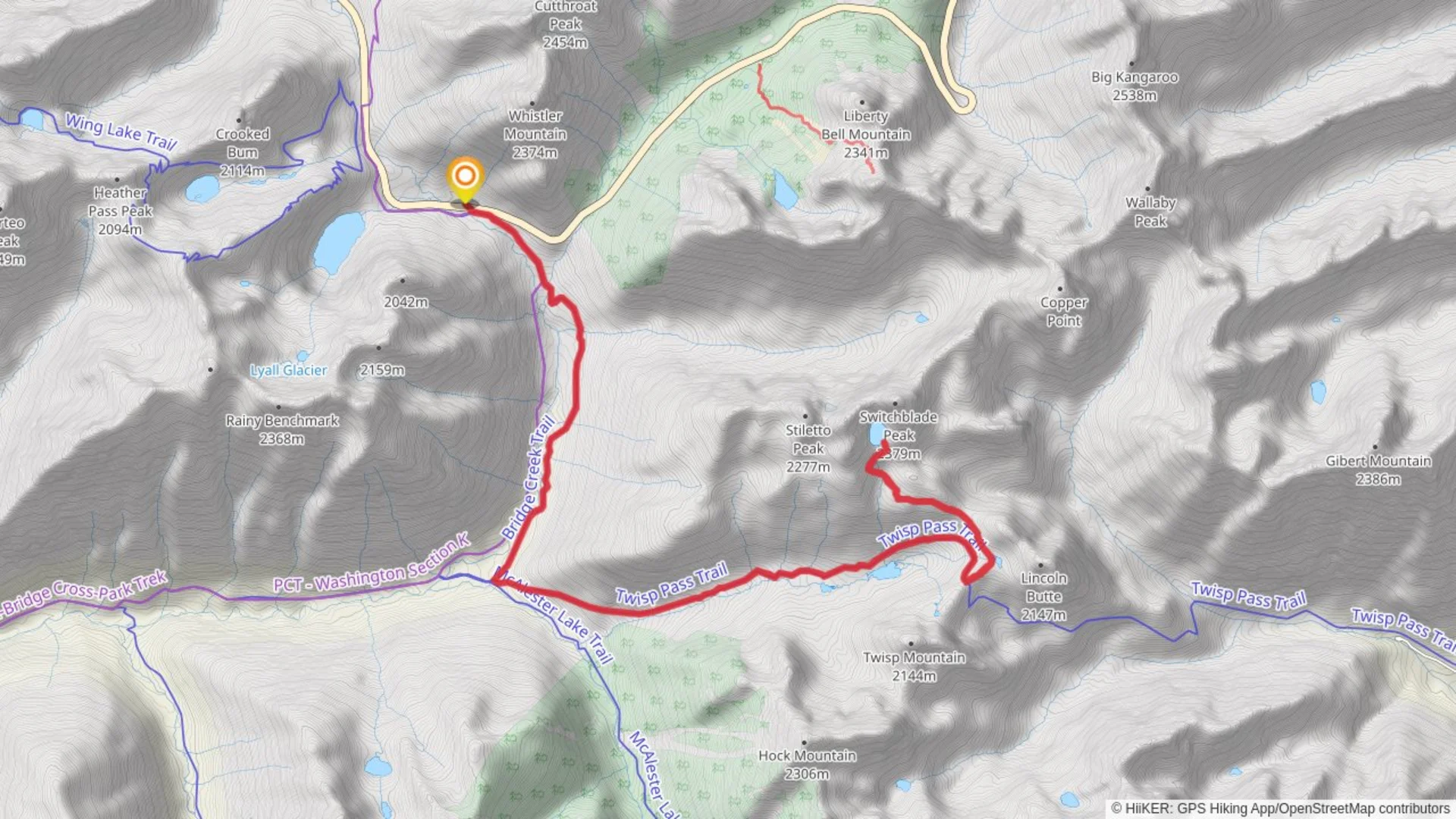 Starting near Chelan County, Washington, the Stiletto Lake via Pacific Crest Trail is an out-and-back hike that spans approximately 28 kilometers (17.4 miles) with an elevation gain of around 1400 meters (4593 feet). This trail is rated as medium difficulty, making it suitable for moderately experienced hikers.