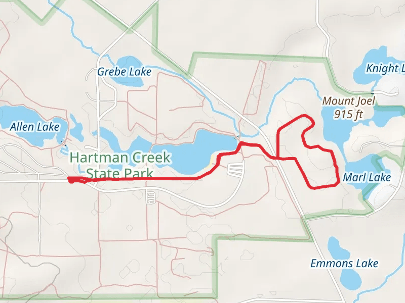 Hartman Lake, Pope Lake and Marl Lake beside Loop. The longest trail is the