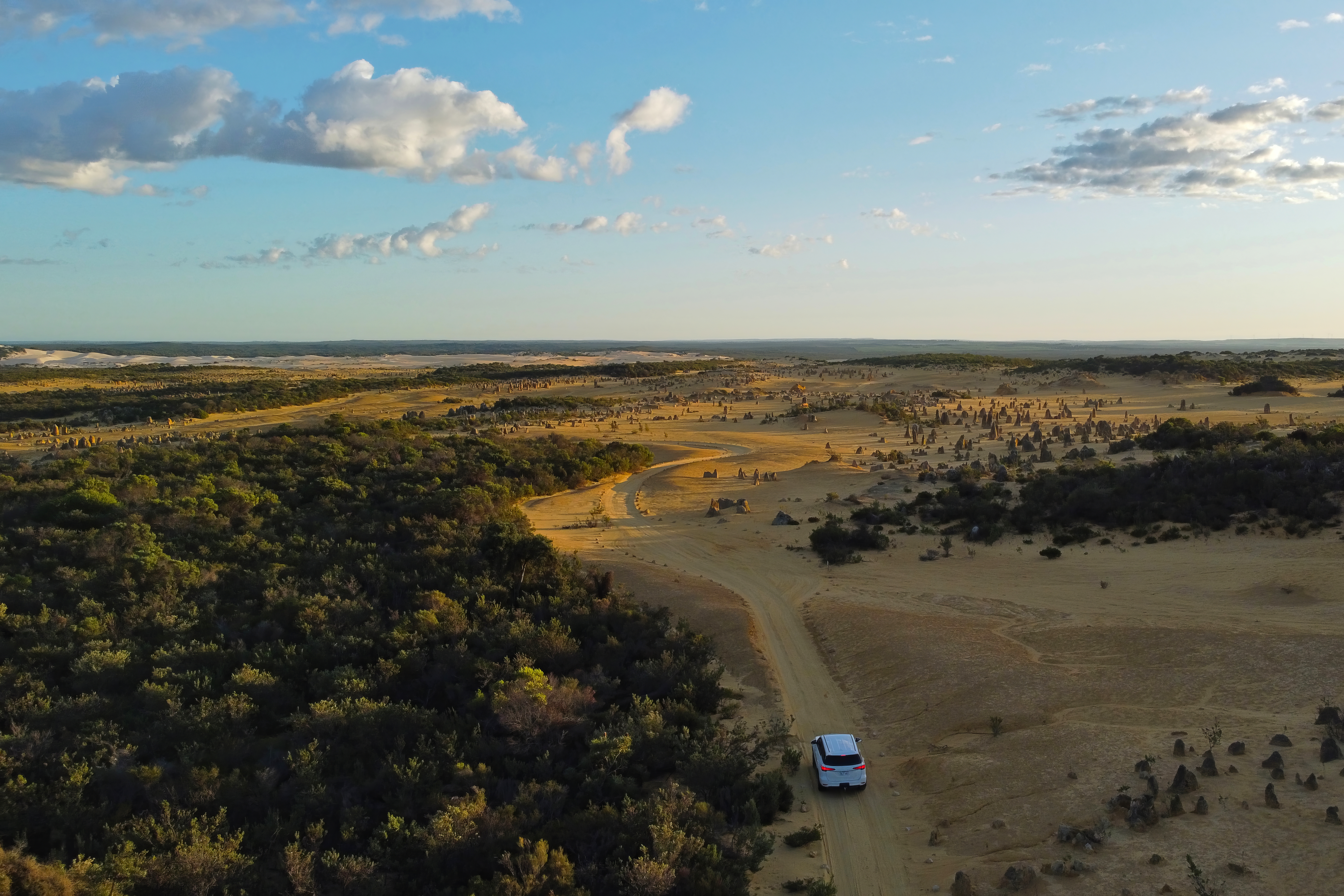 Nambung National Park is situated in Western Australia, approximately 160 kilometers north of Perth. Nearby cities and towns include Geraldton, Jurien Bay, and Cervantes. Established in 1972, the park is renowned for its unique limestone formations known as "pinguinats," which resemble the shapes of penguins. These formations are the result of millions of years of erosion and weathering. The park offers ample parking facilities, with multiple parking areas located throughout the park. There are no specific rules or fees associated with parking. Visitors can explore the park on foot or by bicycle, with designated walking trails and cycling paths available. Nambung National Park is home to a diverse range of native wildlife, including kangaroos, emus, quolls, and bandicoots. The park is also a breeding ground for a variety of seabirds, such as pelicans, cormorants, and terns. One notable animal found in the park is the quokka, a small marsupial known for its friendly demeanor. The park boasts a variety of native flora, including eucalyptus trees, wildflowers, and coastal vegetation. The unique limestone formations provide a habitat for specialized plant species, such as the Nambung daisy, which is endemic to the park. Nambung National Park offers several notable features and landmarks. The Pinnacles Desert is the park's most famous attraction, featuring thousands of limestone formations that stretch across a vast area. Visitors can explore the desert on foot or by car, with guided tours and interpretive walks available. The park also features coastal beaches, including Hangman Bay and Cervantes Beach, which offer opportunities for swimming, surfing, and fishing. Public transport is limited to get to Nambung National Park. The nearest town with regular bus services is Cervantes. From there, visitors can hire a car or join a guided tour to reach the park.