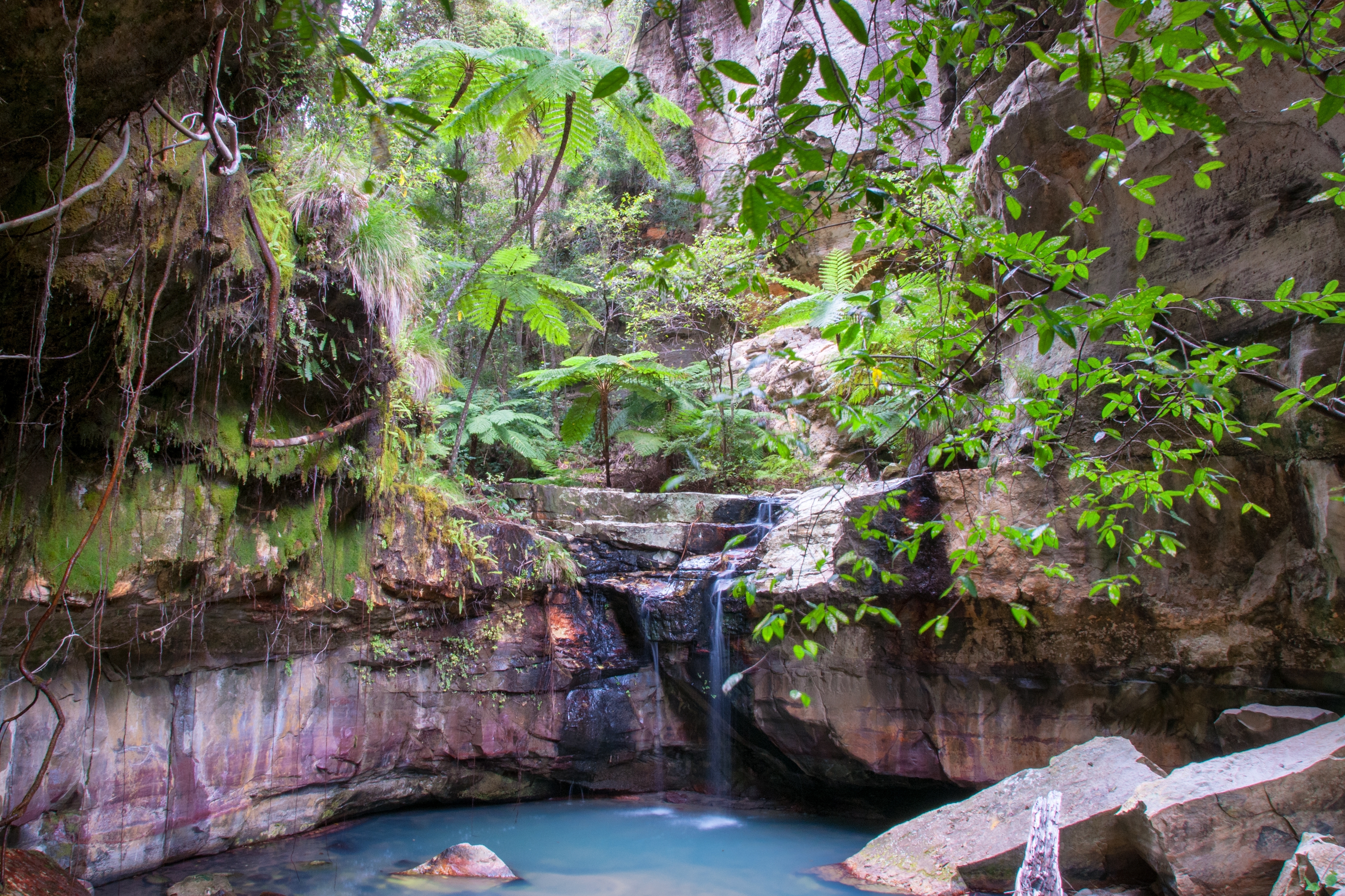 Carnarvon National Park is located in Queensland, Australia, in the Central Highlands region, around 240 km (149 miles) north of Roma. Nearby towns include Rolleston and Injune. Established in 1932, the park is known for its rugged sandstone cliffs and lush gorges, particularly in the famous Carnarvon Gorge section. Parking facilities are available at key entrances like Carnarvon Gorge Visitor Area, with no fees for standard parking. The park is home to diverse wildlife, including platypus, rock wallabies, and over 200 bird species. Unique flora such as ancient cycads, bottlebrush, and eucalypt woodlands thrive here. Significant landmarks include Carnarvon Gorge, Boolimba Bluff, and the Art Gallery—a rock art site featuring Indigenous artwork. The park's creeks and gorges offer scenic views and refreshing waterholes for visitors. Public transport to the park is limited, but car rentals from Roma or Emerald are popular options for reaching the park's entrances.