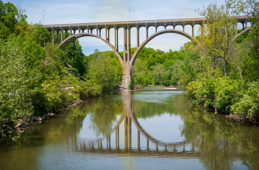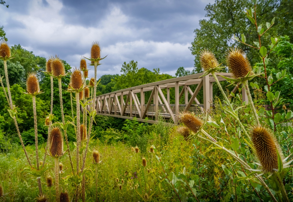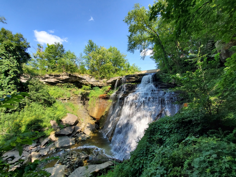 Cuyahoga Valley National Park is located in northeastern Ohio, United States, nestled between the cities of Cleveland and Akron. The park spans along the Cuyahoga River, covering a mix of dense forests, wetlands, and rolling hills. The nearby towns include Peninsula, Brecksville, and Independence, all of which offer convenient access to the park. Established as a national recreation area in 1974, Cuyahoga Valley gained national park status on October 11, 2000. The park was established to protect the natural beauty of the Cuyahoga River Valley while preserving its cultural heritage, including its significance to the Native American peoples and its role in the Ohio and Erie Canal’s history. Parking is readily available throughout the park, with multiple lots at key trailheads, visitor centers, and scenic areas like Brandywine Falls and the Boston Mill Visitor Center. There are no entrance fees, and parking is generally free, though some special events may involve fees. Wildlife in the park is diverse, including species like white-tailed deer, beavers, coyotes, and a wide variety of birds such as great blue herons, bald eagles, and wood ducks. The park's wetlands and riverbanks also provide habitats for amphibians and fish, such as frogs, salamanders, and smallmouth bass. The flora of Cuyahoga Valley includes hardwood forests of oak, hickory, and maple trees, as well as lush meadows and floodplains. Wildflowers like trilliums and violets bloom in the spring, adding color to the landscape. Prominent landmarks within the park include the iconic Brandywine Falls, the Ohio & Erie Canal Towpath Trail, and the historic Everett Covered Bridge. Public transportation options include the Cuyahoga Valley Scenic Railroad, which runs through the park, offering a unique way to explore the area. Local bus services also connect visitors to various points within the park.