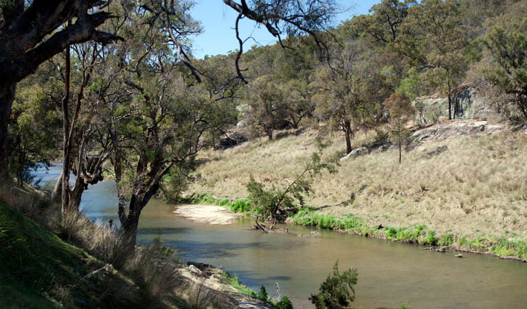 Goulburn River National Park is located in New South Wales, Australia, within the state's Upper Hunter Valley region. It stretches along the Goulburn River, approximately 50 kilometers west of Merriwa and 70 kilometers east of Mudgee. The park is accessible from nearby towns such as Merriwa, Mudgee, and Denman. The park was established in 1983 to protect the diverse ecosystems along the Goulburn River, including sandstone cliffs, riverine environments, and woodlands. Prior to its establishment, the area was used for grazing and mining. Aboriginal rock art and other significant sites can be found within the park, reflecting the long-standing connection of the Wiradjuri, Gamilaraay, and Wonnarua peoples to the land. Goulburn River National Park provides several parking areas, primarily around camping spots such as Big River, Spring Gully, and Washpools. These areas offer convenient access to picnic sites and walking tracks. Parking is generally free, but visitors should be mindful of restrictions during wet weather, as some roads and parking areas may become inaccessible. Wildlife is abundant in the park, with species like eastern grey kangaroos, swamp wallabies, and koalas commonly seen. Birdwatchers can spot wedge-tailed eagles, azure kingfishers, and various parrots, while the Goulburn River itself is home to platypuses and water dragons. Nocturnal animals, including sugar gliders and owls, are also present. The park's flora includes eucalyptus woodlands dominated by species such as ironbark, white box, and river red gum. The riverbanks are lined with casuarinas, while spring wildflowers like orchids and grevilleas add seasonal color to the landscape. Notable features of the park include the towering sandstone cliffs that line the Goulburn River and ancient Aboriginal rock art sites. The river offers opportunities for swimming, fishing, and kayaking. Public transportation to the park is limited, so most visitors travel by car. Photo Credit: Natasha Web and Nick Cubbin